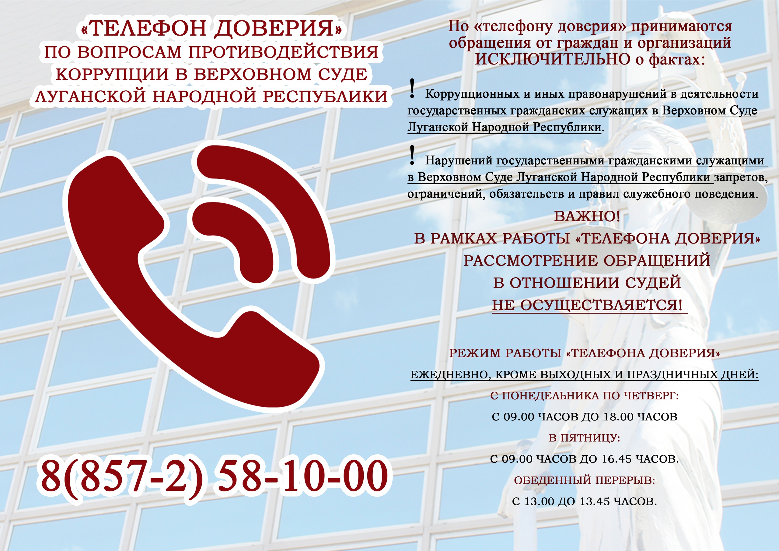Телефон доверия по вопросам противодействия коррупции